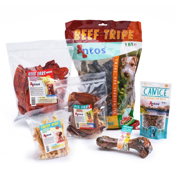 Chaque quadripède peut profiter de véritables produits à mâcher. Un produit à mâcher doit être délicieux et le quadrupède doit l’apprécier. En tant que récompense, en tant que friandise d’entrainement ou tout simplement comme encas responsable. De délicieuses récompenses qui sont accueillies avec un frétillement de la queue. Qui rendent les chiens et les chats heureux et qui sont une fête à donner. Un assortiment riche et varié de produits à mâcher part de Zaltbommel à la conquête du monde. Antos – grossiste, importateur et exportateur – spécialiste depuis 1989.