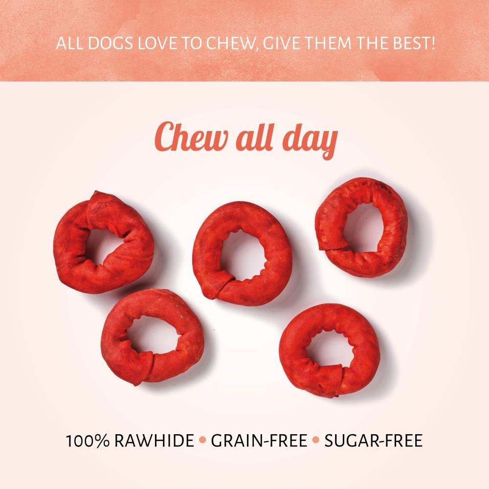 Tous les chiens adorent mâchouiller nos produits à mâcher Donut Rouge. Fabriquées en cuir brut, ils ont un goût fumé naturel que votre chien trouvera irrésistible. Offrez à votre chien un produit à mâcher sain et plus savoureux pour le satisfaire.