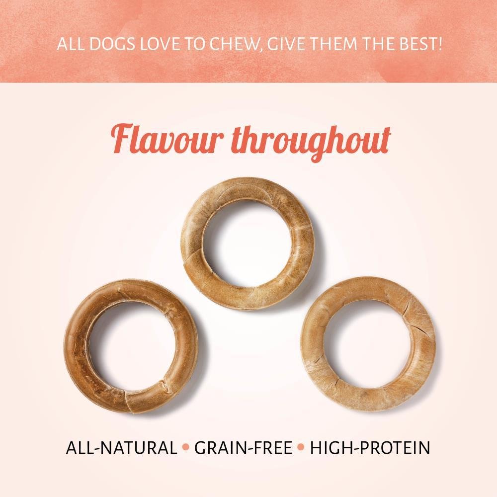 Offrez à votre compagnon à quatre pattes un produit à mâcher qui procure un sentiment de bien-être grâce aux produit Anneau dog chews. Ces objets à mâcher sont robustes et solides pour les mâcheurs actifs qui frétilleront de plaisir. Laissez votre chien mastiquer tous les jours pour profiter pleinement de la vie.