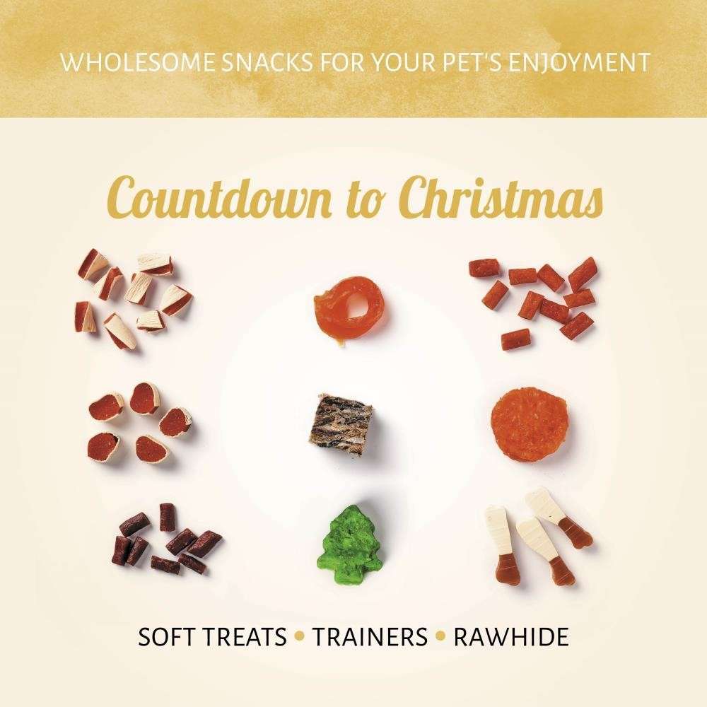 Compte à rebours avant Noël de la manière la plus amusante et la plus délicieuse. Partagez l'excitation en cochant chaque jour avant le 25 avec une fabuleuse friandise pour votre ami à quatre pattes. Jusqu'au 25 décembre, 24 articles sont proposés chaque jour, dont du poulet, du canard, du poisson et des friandises dentaires - et même un arbre de Noël !