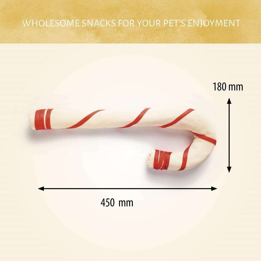 Fabriqué à la main, notre Christmas Candy Cane (sucre d'orge de Noël) est l'un des favoris des fêtes. Sûr et naturel, ce sucre d'orge à mâcher en cuir brut est rayé de manière gaie pour mettre votre canidé dans l'esprit de Noël.