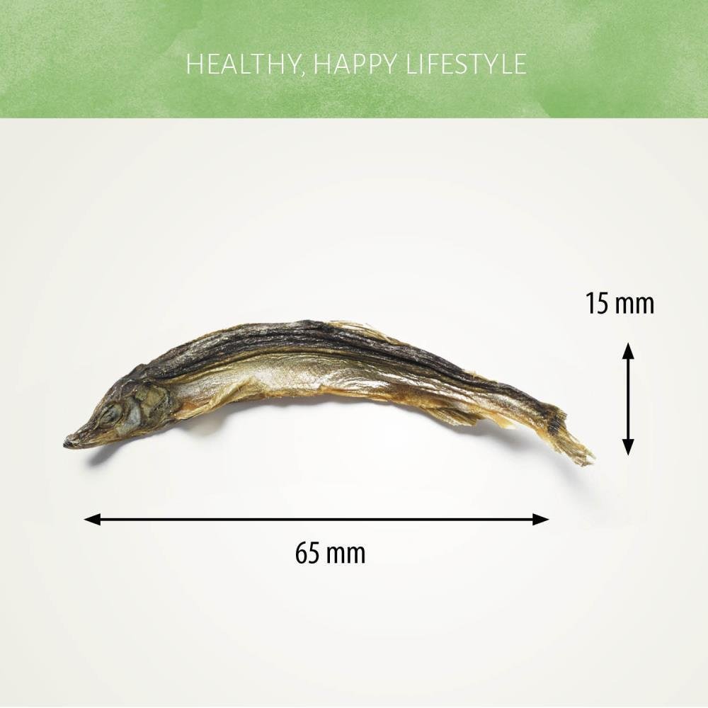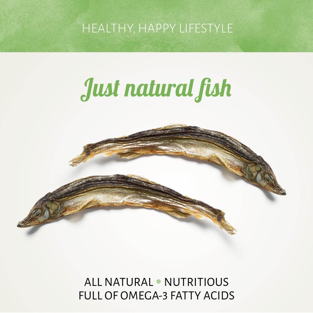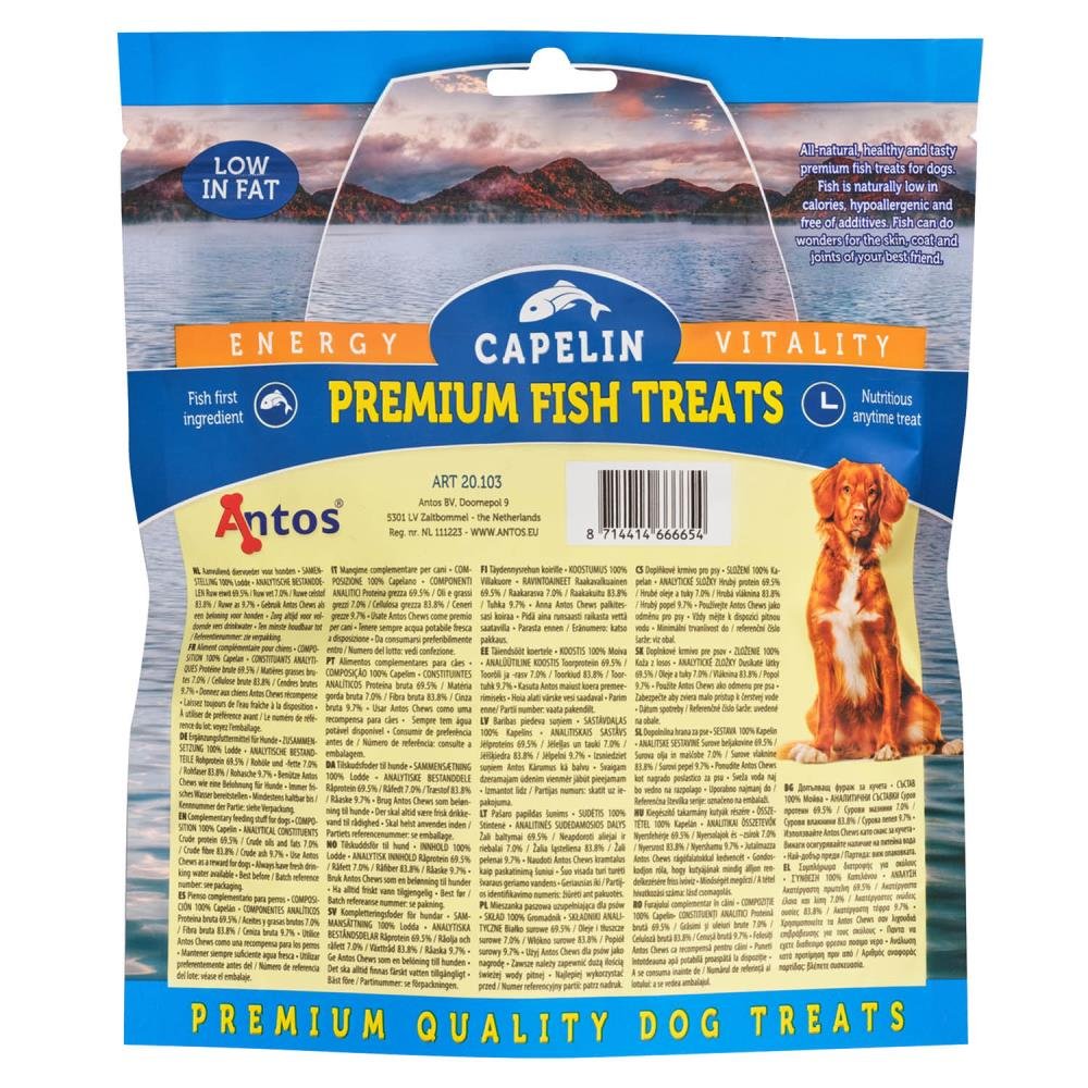 Donnez à votre chien un avant-goût de l'Atlantique Nord avec nos friandises au poisson. Le capelan est une espèce de poisson à la fois abondante et vulnérable. Les friandises sont composées de capelans 100% naturels et comestibles, provenant directement des mers naturelles.