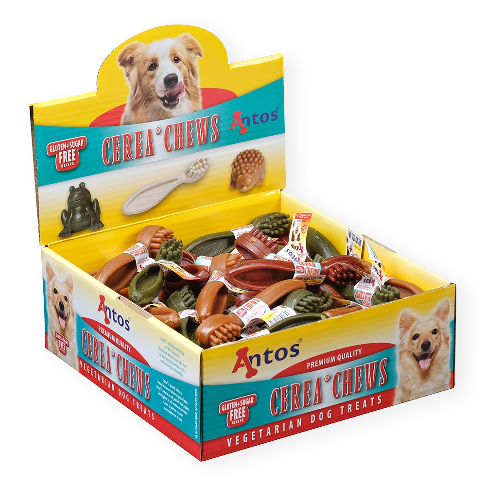 Lorsque votre chien aime mastiquer, donnez-lui exactement ce dont il a envie avec nos produits dentaires à mastiquer Cerea Brush. Ces friandises végétariennes participent en prime à promouvoir des dents propres, des gencives saines et une haleine fraîche au fur et à mesure que votre chien mâche.