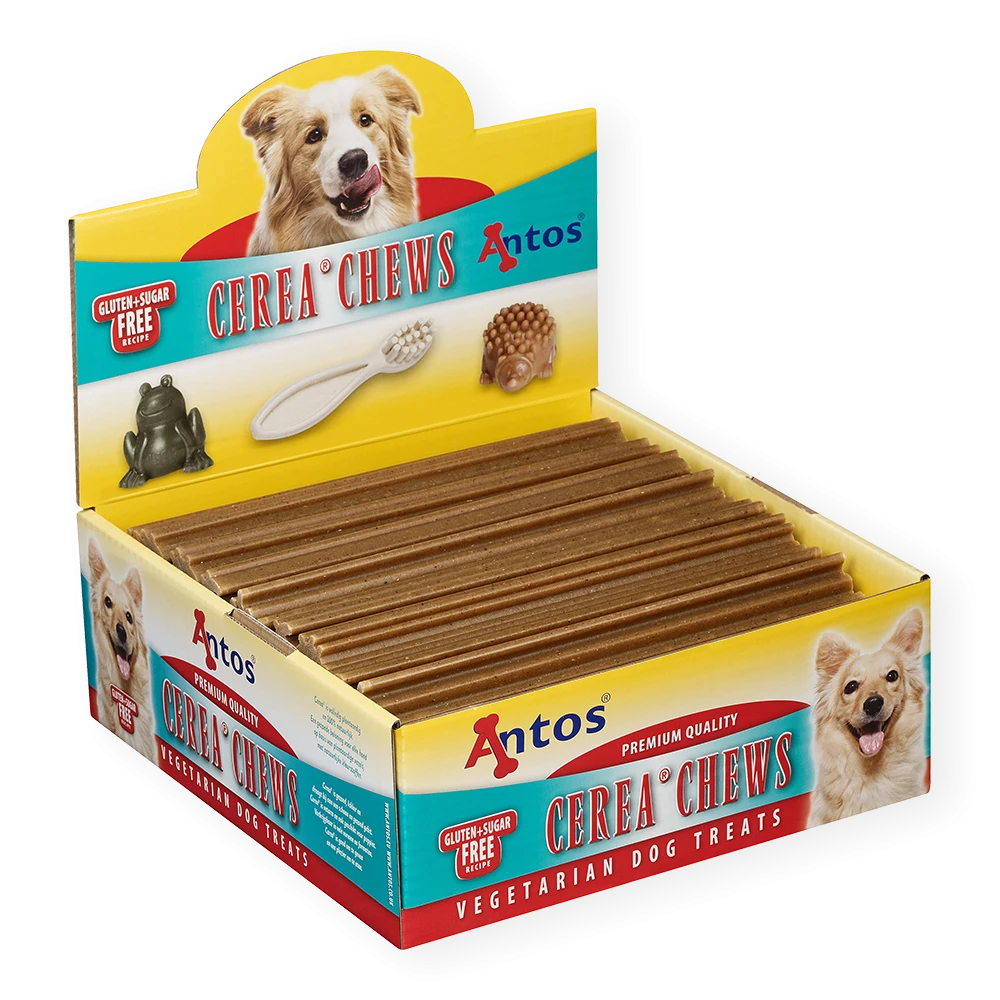 Rafraîchissez l'haleine de votre chien en récompensant votre chien avec les produits dentaires à mastiquer Cerea Eurostar. Vous pouvez donner ces friandises à votre chien sans culpabiliser étant donné qu'elles sont entièrement fabriquées à partir d'ingrédients naturels.
