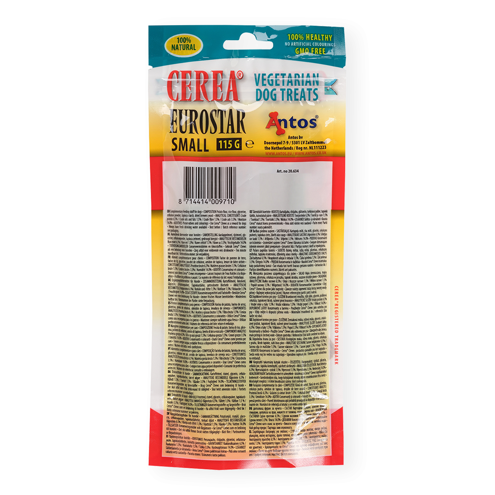 Découvrez la texture grattant les dents des Cerea Eurostar. La texture et la forme uniques de ces produits dentaires à mastiquer participent à enlever la plaque et le tartre à chaque fois que votre chien mord dedans. Ces récompenses amuseront votre chien et plairont à son estomac !