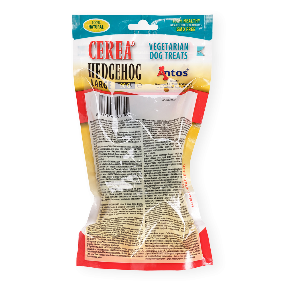 Découvrez notre Cerea Hérisson. La forme unique garantit un flux sanguin adéquat à travers les gencives et prévient également la mauvaise haleine et l'accumulation de plaque et de tartre. Entièrement comestible et fabriqué avec des ingrédients naturels.