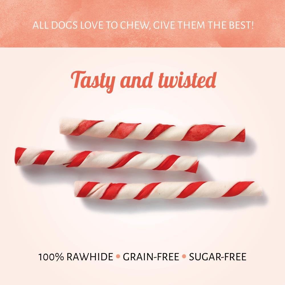 Essayez ce classique de la mastication pour chien, riche en protéines, avec une touche de fantaisie. Nos ChaCha's Roll Rouge ont une texture torsadée intéressante que votre chien va vraiment adorer. Ils sont faits pour que votre chien ait du plaisir à mâcher et pour maintenir son hygiène buccale dans son ensemble.