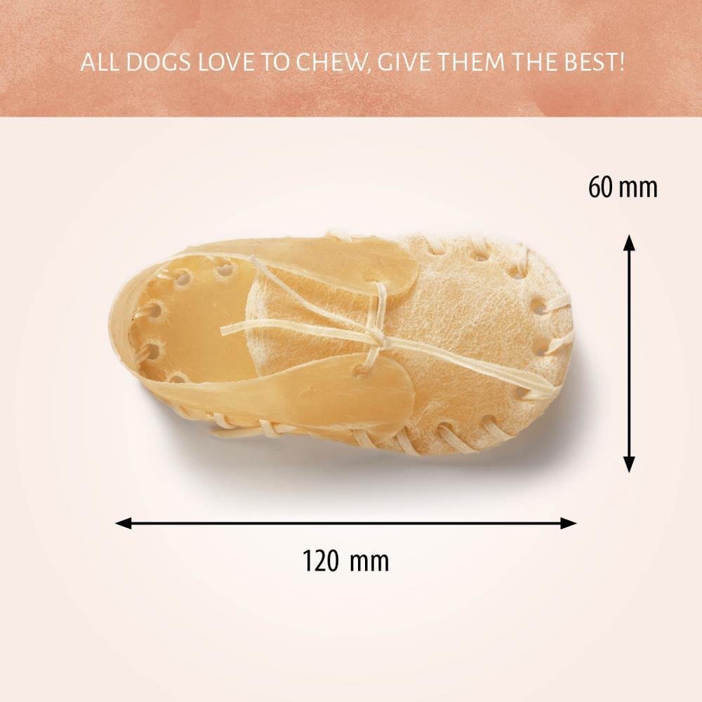 Votre compagnon en fourrure aimera jouer avec nos produits à mâcher pour chiens. Chaque petite chaussure est en cuir brut entièrement naturel et dispose de véritables lacets que votre chien adorera mâchouiller. Faites preuve de créativité en les remplissant de viande.