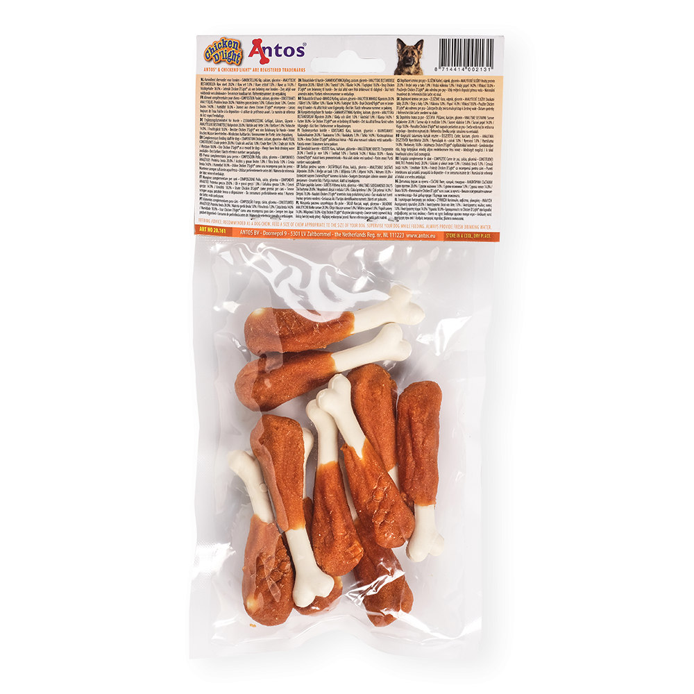 Savoureux et naturellement délicieux, nos Chicken D'light Drumsticks ont gagné la faveur de nombreux chiens. Les friandises sont faites à partir d'os calciques enveloppés dans de la viande de poulet.
