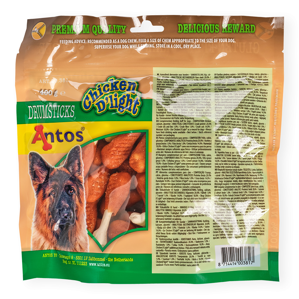 Récompensez votre chien avec une délicieuse friandise qui lui fera du bien avec les pilons Chicken D'light Drumsticks. La saveur alléchante du poulet comblera même le plus difficile à satisfaire.