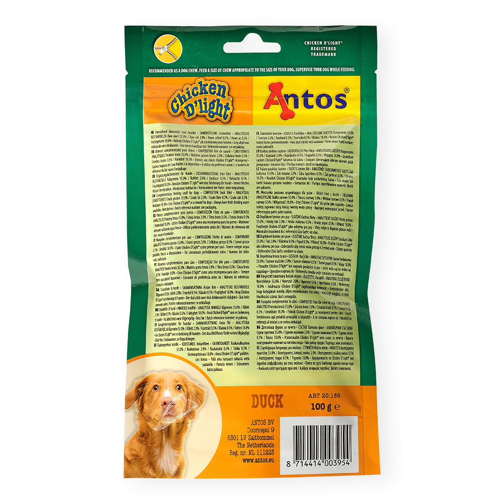 Votre compagnon à poils sera heureux de faire des acrobaties pour obtenir ces délicieux et nourrissants bâtonnets Chicken D'light Duck. Ces délices à mâcher sont faits avec du véritable canard comme unique ingrédient. Ils peuvent être coupés en petits morceaux pour les chiots.