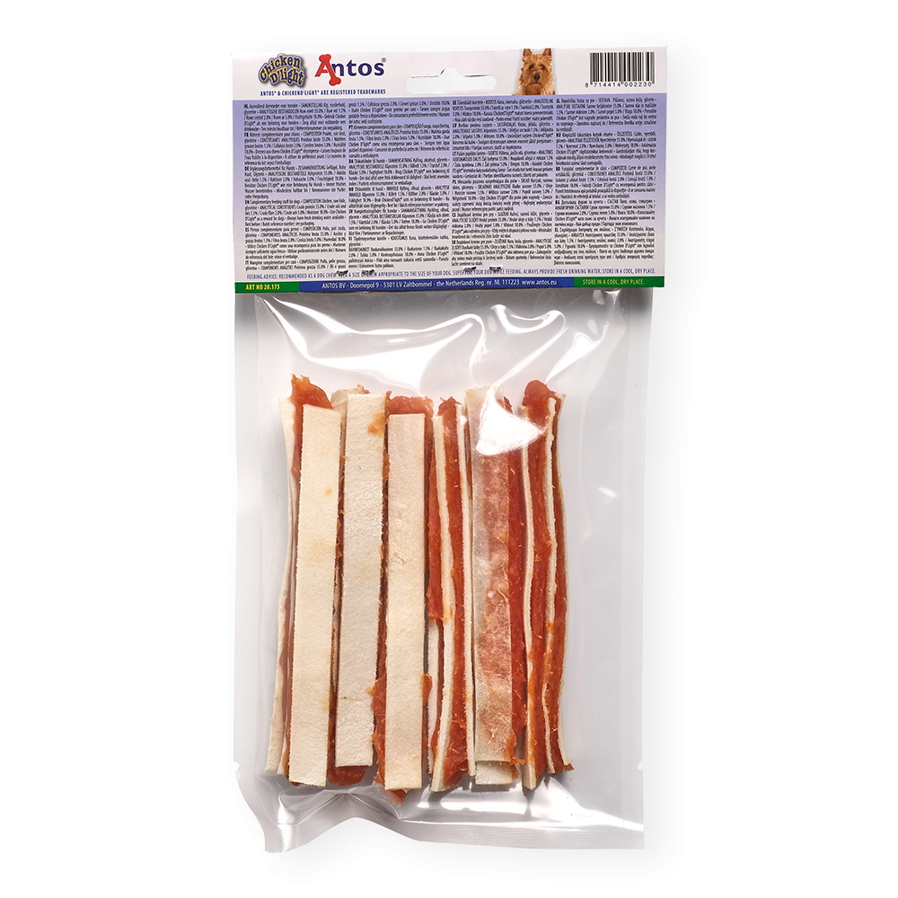 Il est important de récompenser votre chien lorsqu'il a été sage. Quelle meilleure façon de le faire que de lui offrir notre Chicken D'light Jerkey. Cette combinaison de poulet et de croûte de cuir est pleine de saveur et pauvre en matières grasses.