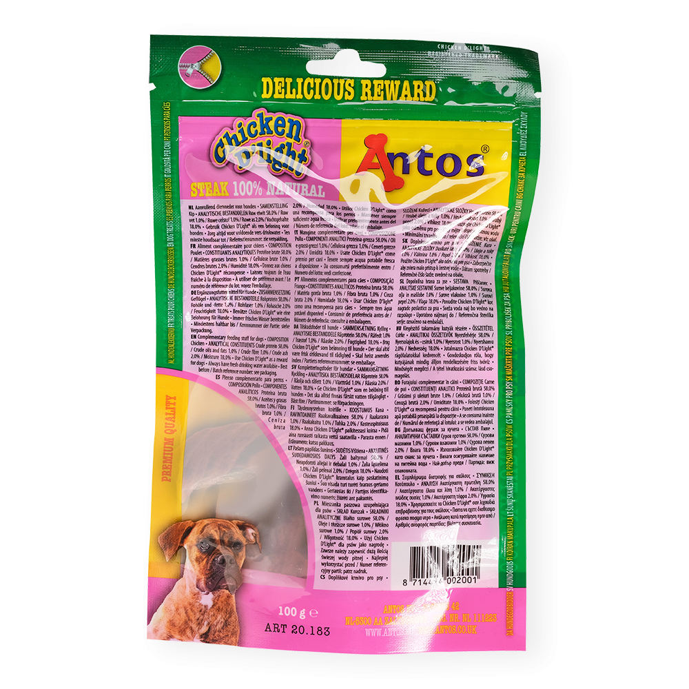 Parce que seul le meilleur compte pour votre ami à quatre pattes, récompensez-le avec un Chicken D'light Steak. Ils sont faits à 100 % à base de poulet pour un festin riche en protéines qui rassasie et nourrit à chaque bouchée.