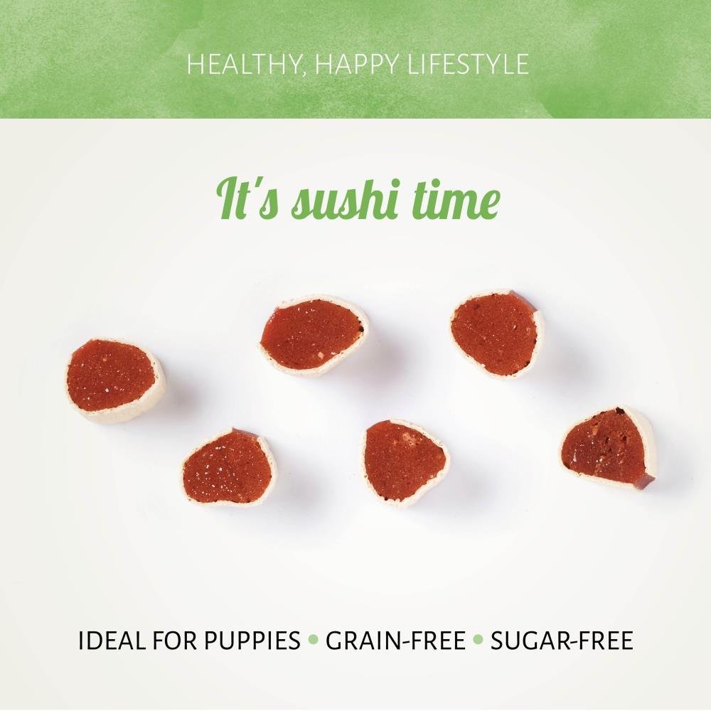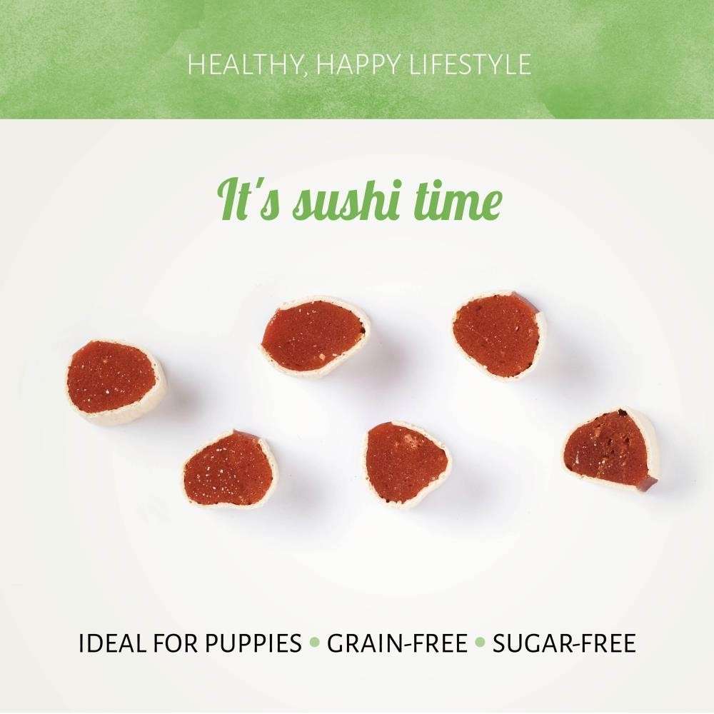 Les chiens aussi peuvent manger des sushis ! Notre Chicken D'light Sushi est une délicieuse friandise qui invite à la réjouissance. Il est fait de poulet pur, enveloppé dans une couche à base de morue riche en nutriments. Incroyablement délicieuses, ces friandises contribuent à la santé de la peau et à la brillance du pelage.