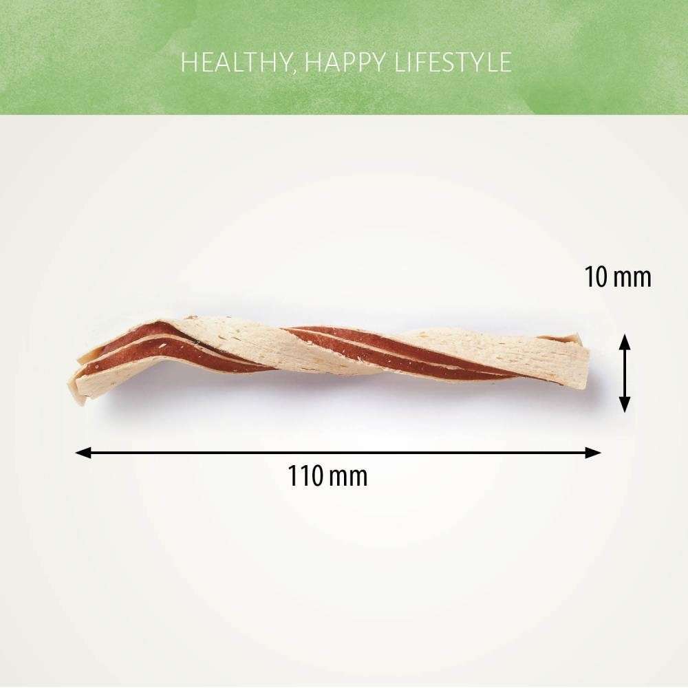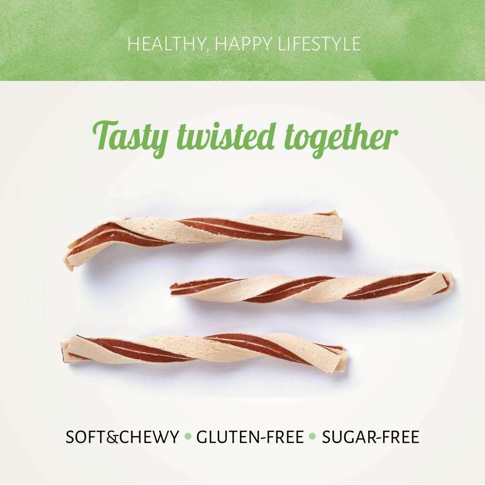 Nos Chicken&Fish Twists sont faits de lanières de poulet et de lieu noir en forme de torsade. Naturellement pauvres en matières grasses, ils ont un goût délicieux que votre chien adorera. Ces friandises aideront à maintenir une peau et un pelage sains.