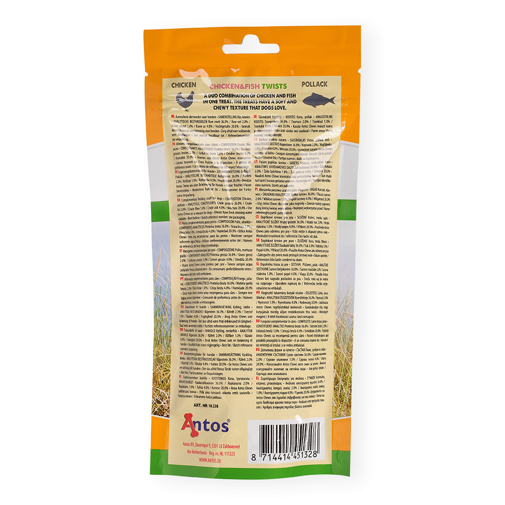 Chicken&Fish Twists est composé d'un savoureux poulet torsadé avec du poisson sain. Ces friandises sont parfaites pour un en-cas ou comme support de dressage. Elles aideront à réduire la plaque dentaire et à garder les gencives de votre chien en bonne santé.