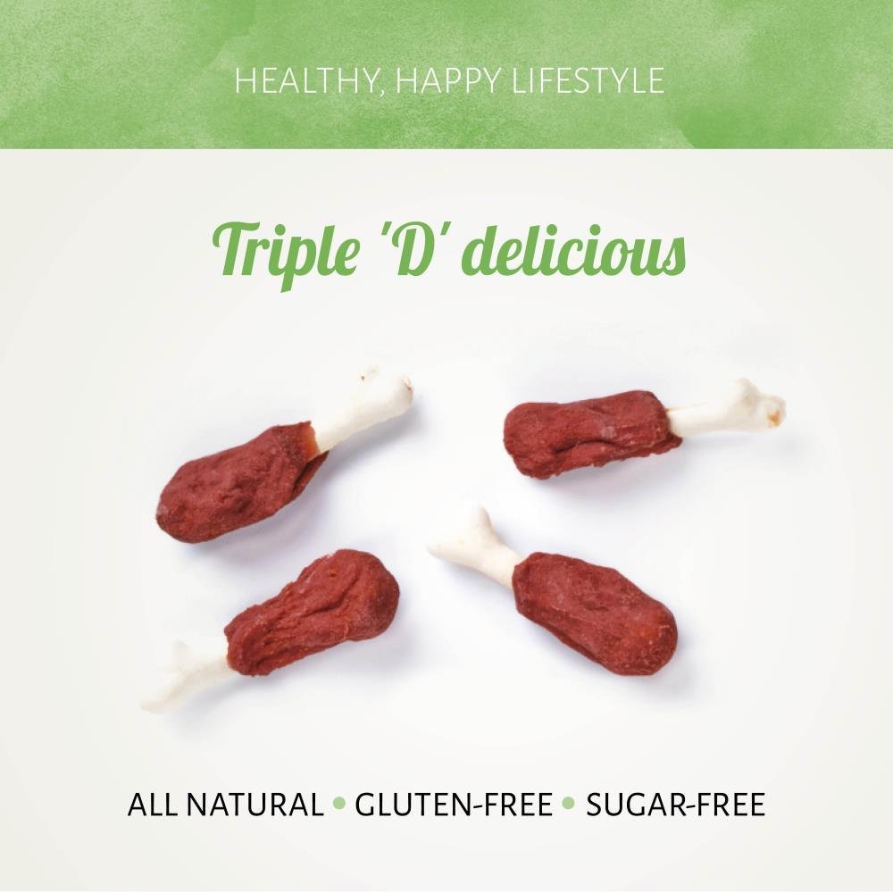 Une saveur de canard de première qualité que votre chien va adorer. Découvrez nos Duck D'light Drumsticks. Le mélange unique de canard et de calcium dans une seule friandise est parfait pour le dressage, les friandises ou tout simplement pour faire plaisir !