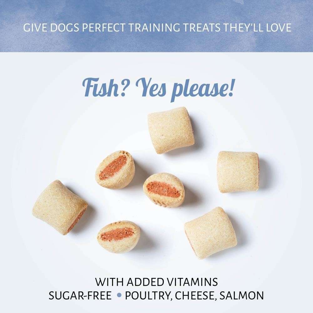 Du poisson? Oui, je veux bien. Si le saumon a une place spéciale dans le coeur et l'estomac de votre chien, donnez-lui des biscuits duo saumon. Ces friandises croustillantes sont idéales comme en-cas quotidien.