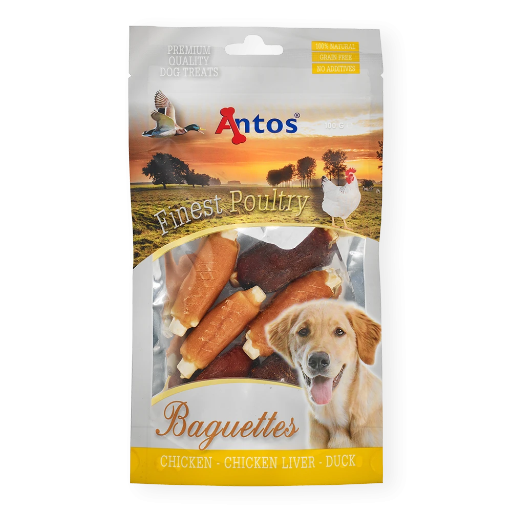 Nos Finest Poultry Baguettes offrent trois saveurs en une seule bouchée : poulet, canard et foie de poulet. Ces gâteries offrent un divertissement durable et beaucoup de plaisir à votre meilleur ami.
