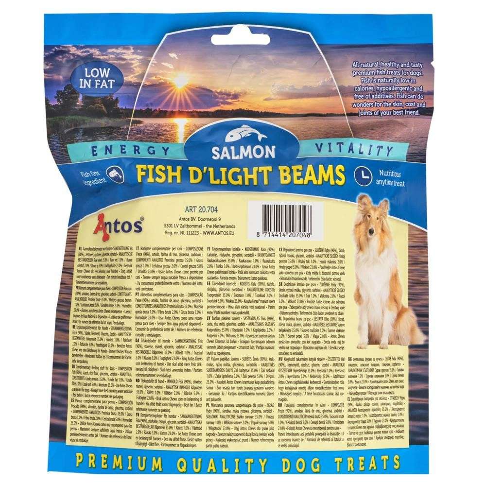 Les Fish D'light Beams sont des bâtonnets sains au goût dont les chiens raffolent. C'est amusant pour votre chien de les mâcher et ils ont un goût fumé unique de saumon. Votre chien sentira la différence.