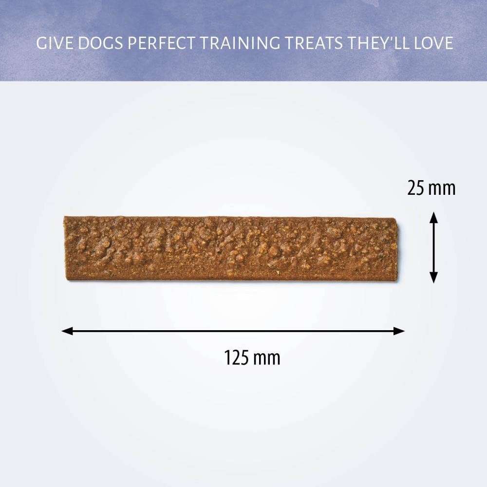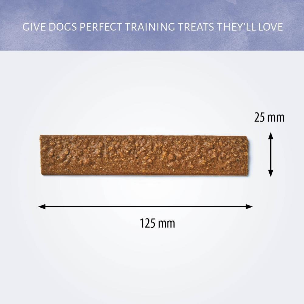 Recommandé comme en-cas pour les chiens. Donner des friandises de manière responsable: choisissez les en-cas comme recommandé en fonction de la taille de votre chien. Chiens < 5 kg (XS): 1 pièces par jour. 6-10 kg (S): 1,5 pièces par jour. 11-25 kg (M): 3,5 pièces par jour. 26-35 kg (L): 4,5 pièces par jour. Cassez en petits morceaux pour les petits chiens. Pour la sécurité de vos animaux de compagnie, surveillez votre chien lorsque vous lui donnez un produit à mâcher ou une friandise. Maintenez de l'eau fraîche à disposition à tout moment. Conserver dans un endroit frais, propre et sec. Ce produit est une friandise et n'est pas destiné à être donné comme repas.