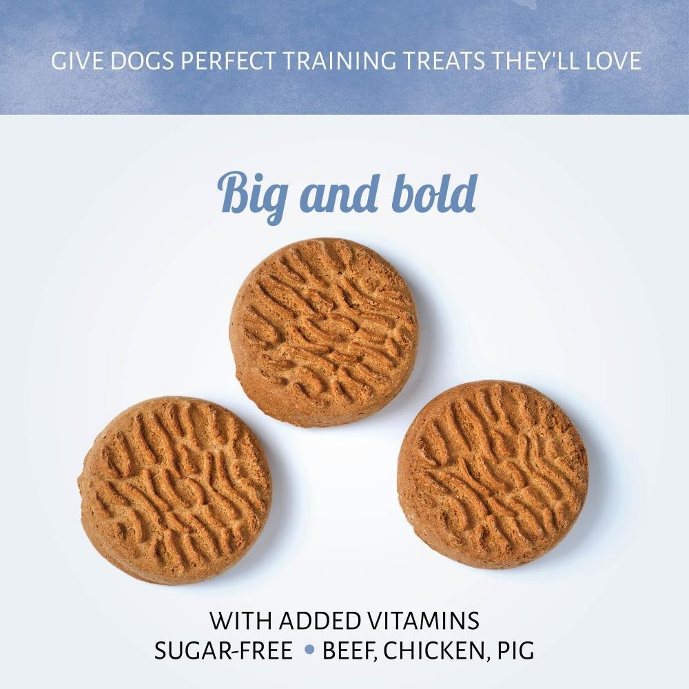 Nos Biscuits Jumbo sont la friandise croquante parfaite pour votre chien amateur de viande. Votre chien aimera le croustillant satisfaisant et nettoyant les dents de ces biscuits sans sucre. Les gros biscuits seront appréciés n'importe où !
