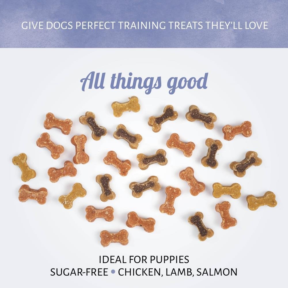 Nos friandises pour chiens Mini Mix sont des friandises au goût de poulet, d'agneau et de saumon, dont l'arôme fera saliver votre chien. Votre chien ne se trompera pas sur l'odeur alléchante de ces délicieuses friandises.