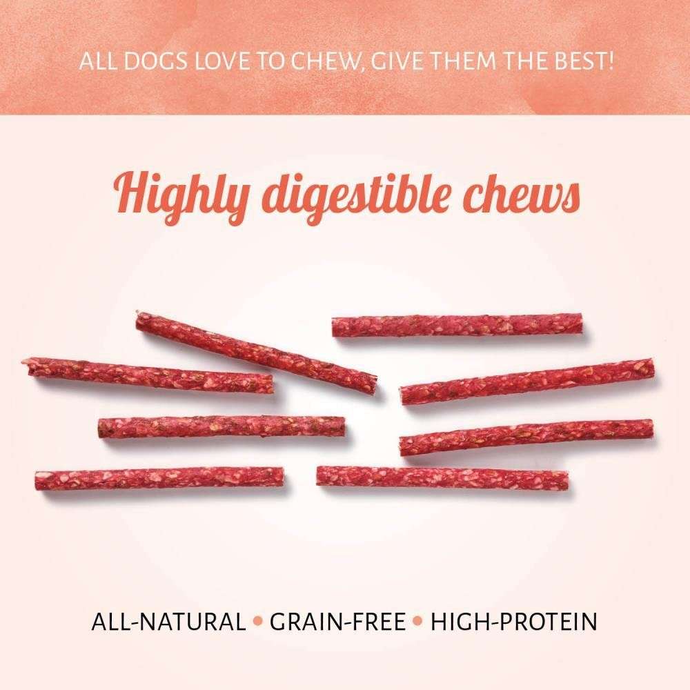 Laissez votre ami à quatre pattes découvrir la satisfaction de mastiquer les bâtonnets rouges Munchy. Ces produits à mâcher sans sucre sont fabriqués avec seulement deux ingrédients, du cuir brut et de la farine de riz. C'est un produit à mâcher résistant et très digeste.