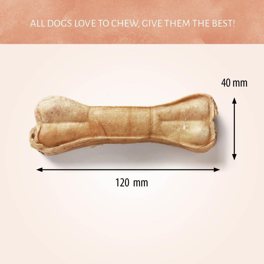 Les Os à mâcher aux nerfs de boeuf sont faits à partir de délicieuses croutes de cuir brut avec une véritable garniture de nerfs de boeuf. Ces produits à mâcher riches en protéines favorisent une mastication saine et constituent une friandise idéale pour les chiens de taille moyenne. Votre chien va adorer la mastication !