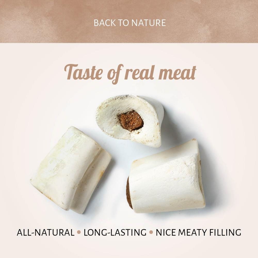 Notre os à moelle blancs au bon goût de viande est un bon produit pour tenir votre chien occupé et diverti pendant qu'il profite du surplus de goût de la garniture au bon goût de viande. Le délicieux en-cas pour chien naturel est la manière idéale de gâter votre meilleur ami.