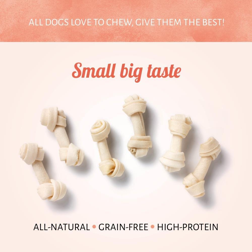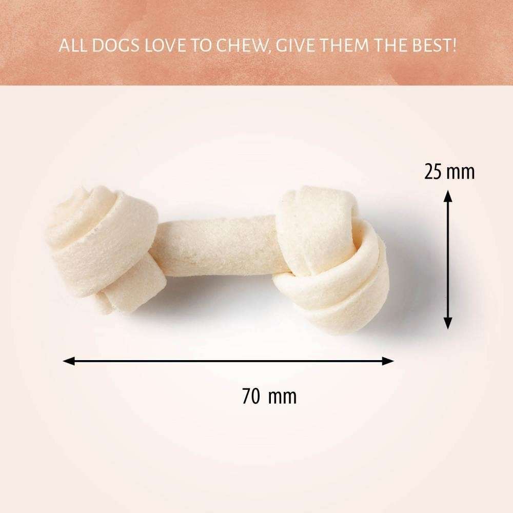 Votre petit compagnon va adorer mâchouiller notre petit os à noeuds. Ces produits à mâcher entièrement naturels sont parfaitement adaptés aux petits chiens et regorgent de protéines. Votre ami à poils va se régaler de ces petites gâteries.