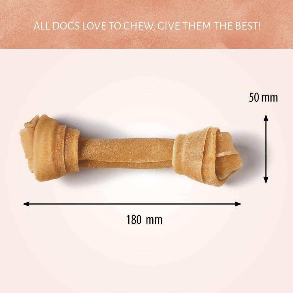 Os à noeuds à mâcher pour chien en lot de deux. Voilà de quoi satisfaire les besoins de votre chien. Ces produits à mâcher entièrement naturels en cuir brut méritent que votre chien en bave et sont fabriqués avec toute la qualité authentique qu'il mérite.