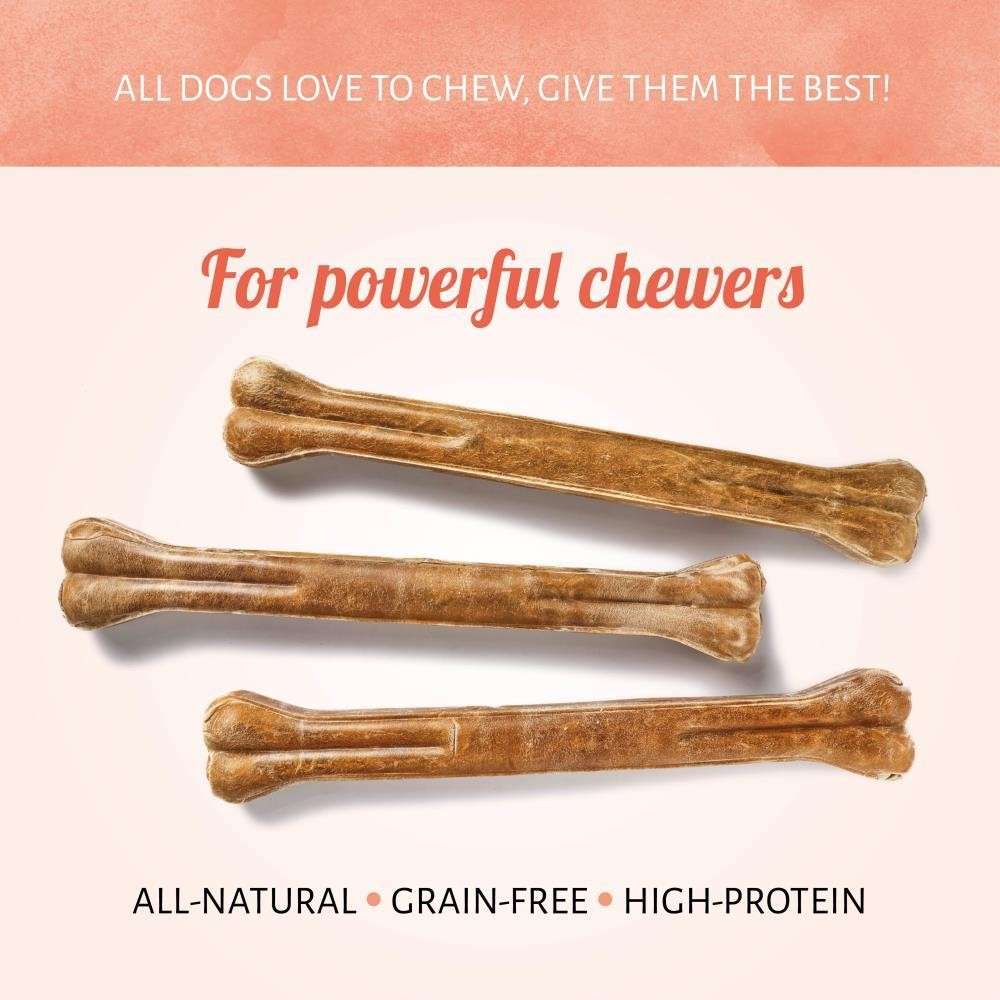Si vous cherchez un produit à mâcher pour gros chien, vous l'avez trouvé ! Nos produits à mâcher entièrement naturels à base d'os pressés pour chiens offrent la satisfaction de la mastication du cuir brut avec une saveur irrésistible. Votre ami sera occupé à déguster toute cette saveur !