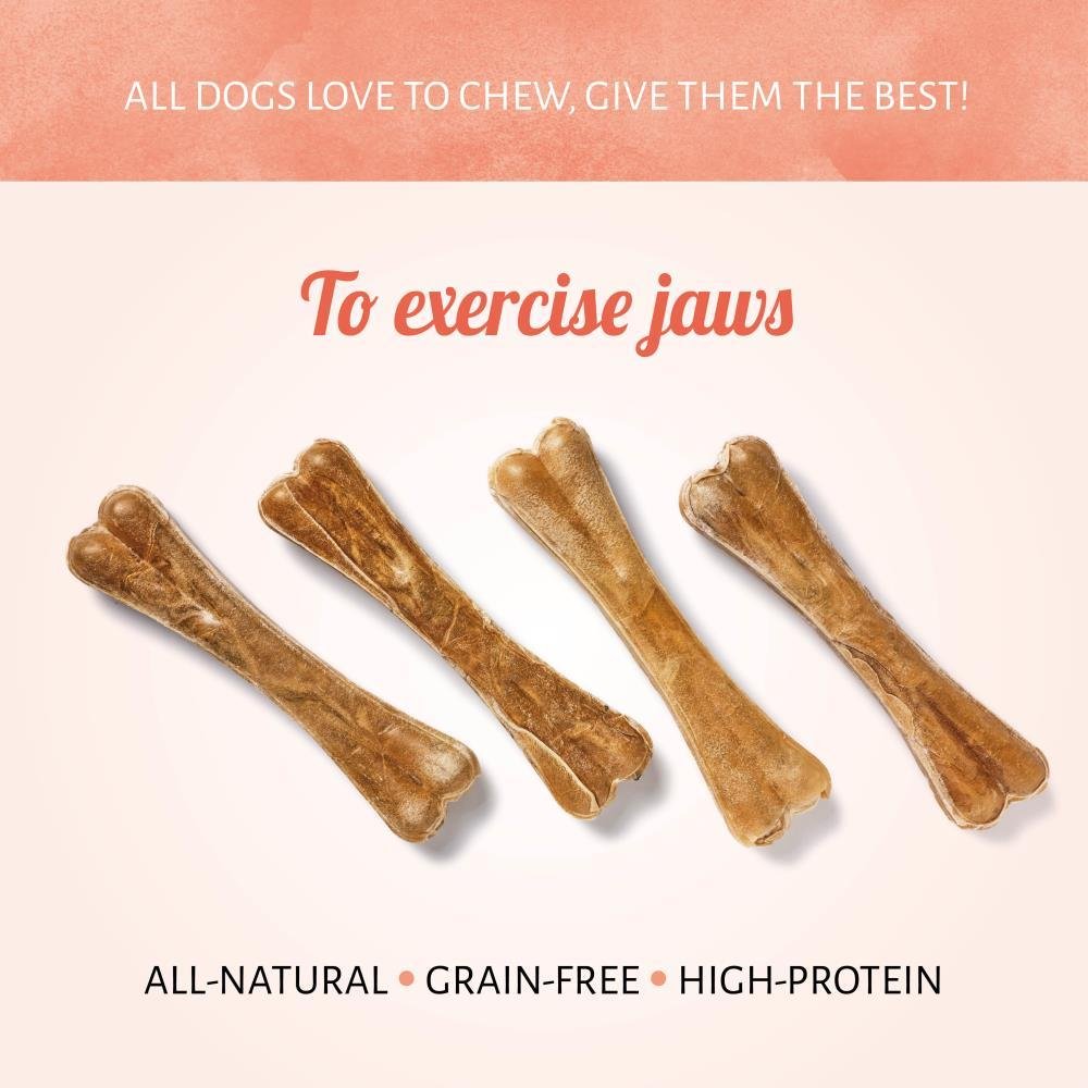Les chiens mordillent pour faire travailler leurs mâchoires, se nettoyer les dents et pour se divertir. Votre chien adorera mastiquer nos délicieux os pressés. Votre toutou aimera le goût, la forme classique et la forte prise en bouche, soyez-en certain !