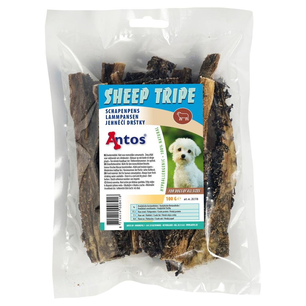 Panse de mouton est un produit 100% naturel et ne contenant pas de céréales. Elle est parfaite pour les chiens qui ont des sensibilités ou des allergies aux aliments courants. La tripe de mouton participe à restaurer l'équilibre de l'estomac de votre chien et à améliorer la digestion.