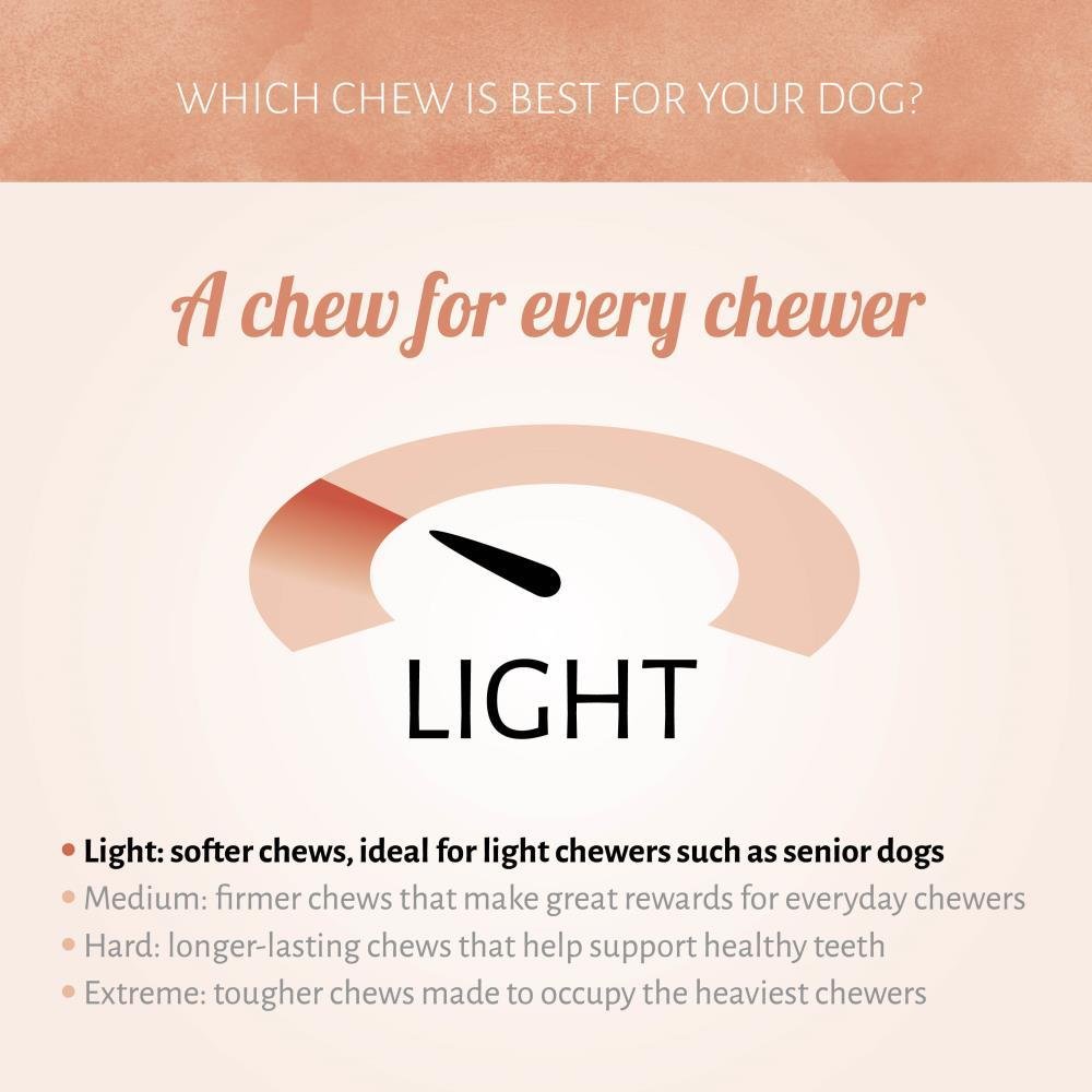 Offrez à votre compagnon le goût de viande qu'il aime avec les produits à mâcher pour chiens Premium Chips Blanc. Ces produits à mâcher entièrement naturels à un seul ingrédient sont nutritifs et excellents pour l'hygiène dentaire et conviennent aux chiens de tous âges.