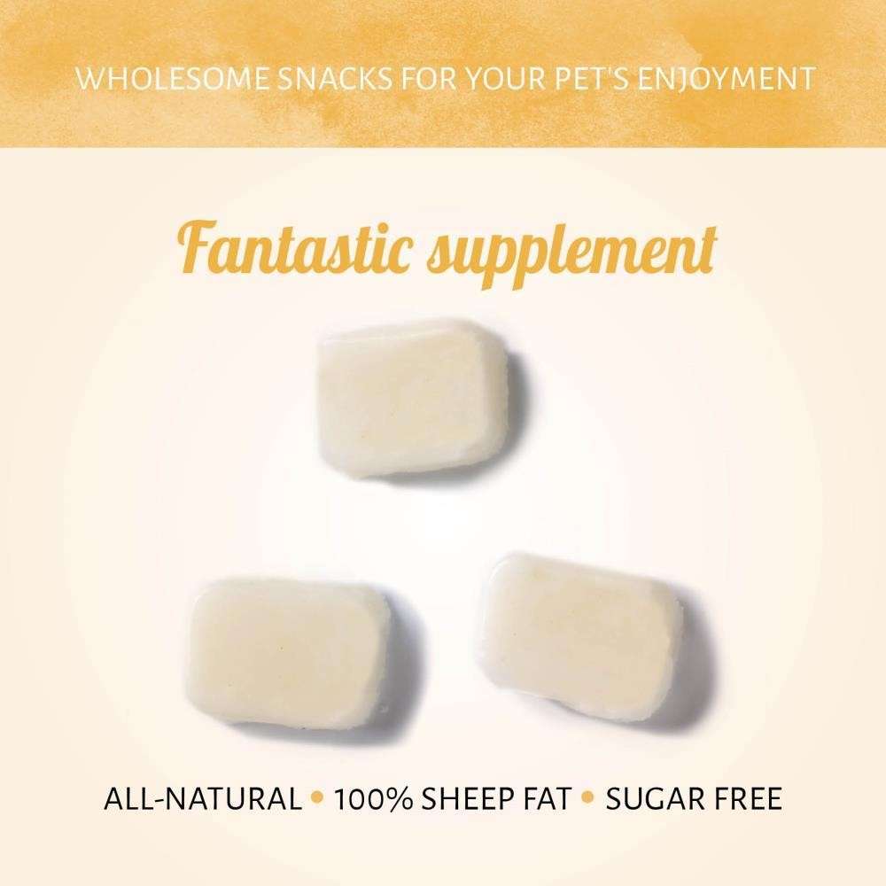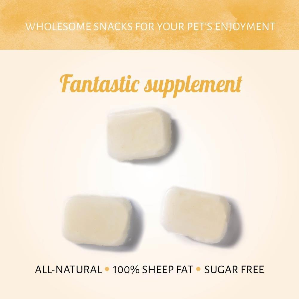 RAM Graisse de mouton naturelle est un fantastique complètement aux repas quotidiens de votre chien. La graisse de mouton n'est pas seulement un complément savoureux, elle favorise un beau pelage et une belle peau de votre meilleur ami. Votre chien l'adorera.