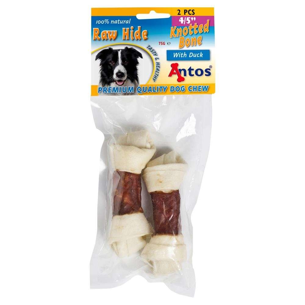 Raw Hide White + Duck Knotted Bone 4/5'' 2 pces