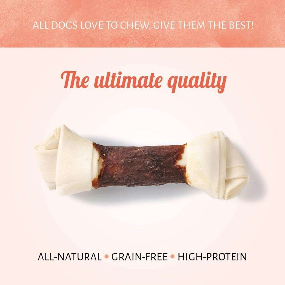 Aidez votre acolyte à améliorer son programme d'exercice avec Raw Hide White + Duck Knotted Bone. La viande de canard est longuement cuisinée pour garantir une qualité et une saveur optimales. Un délice dont votre chien ne peut se passer.