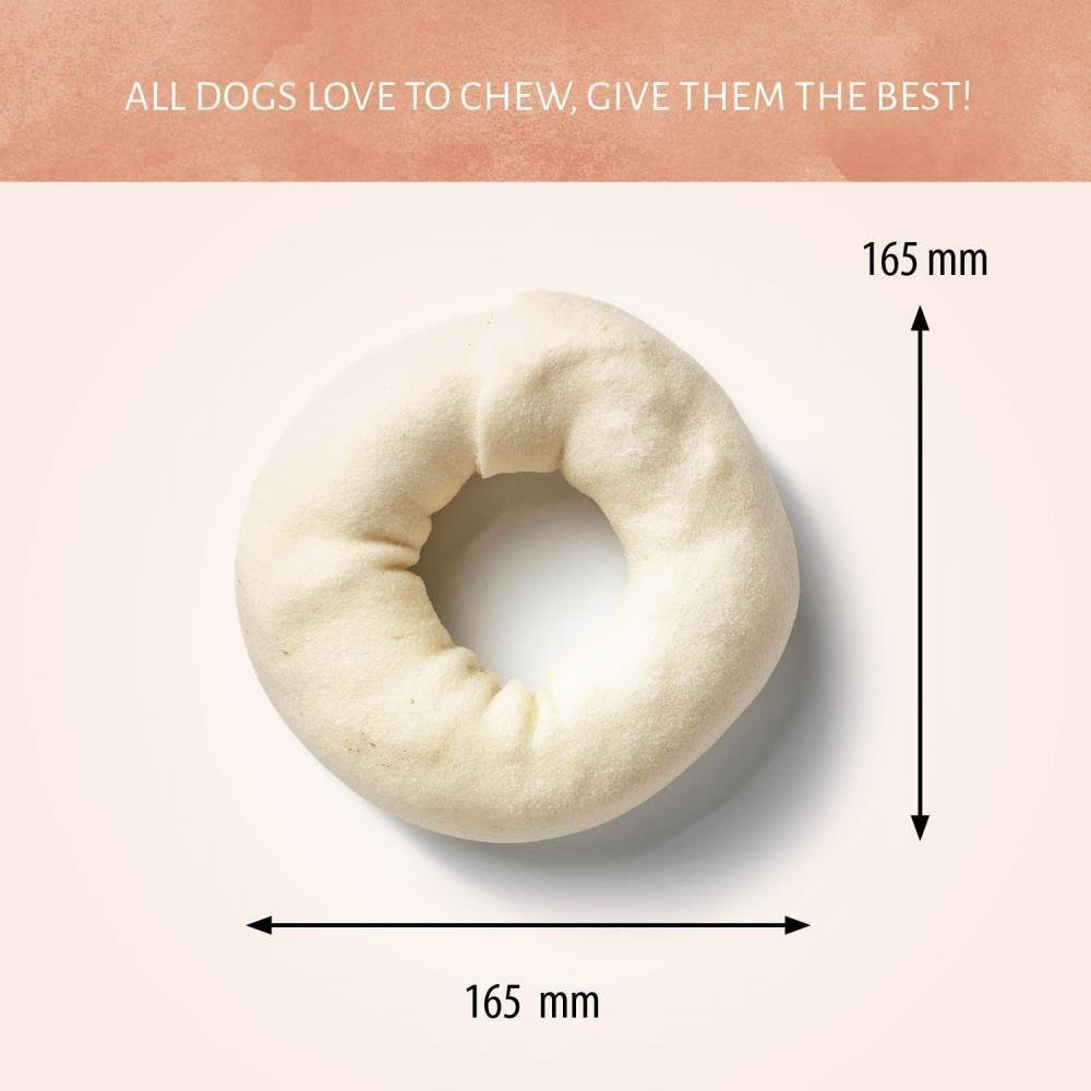 Offrez à votre compagnon canin les bienfaits prolongés de la mastication que procure l'anneau Raw Hide White. Fabriqué en cuir brut entièrement naturel, cet anneau offre des heures de plaisir aux amateurs de mastication modérée ou énergique.